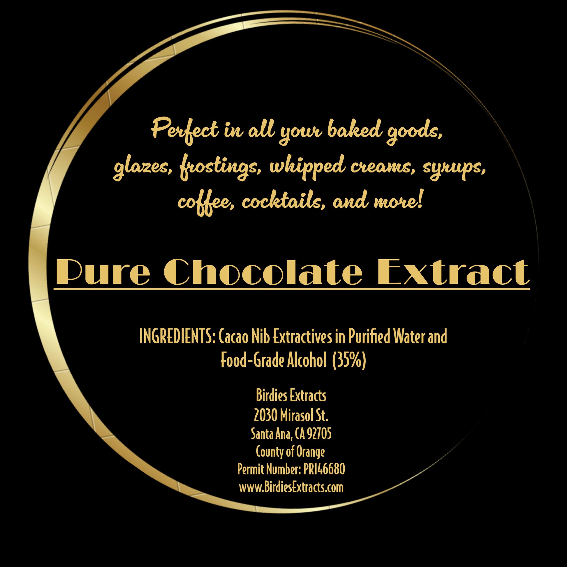 Our Pure Chocolate Extract are delicious, fragrant, and a completely natural way to bring the bold flavor of pure cocoa into your kitchen pantry. Add a splash of chocolate to your recipes without any artificial flavorings or additives. Our extracts are hand-crafted in small batches using cracked cacao nibs, purified water, and organic food-grade alcohol. Perfect way to enhance your baked goods, glazes, frostings, whipped creams, syrups, coffee, cocktails, and more!
