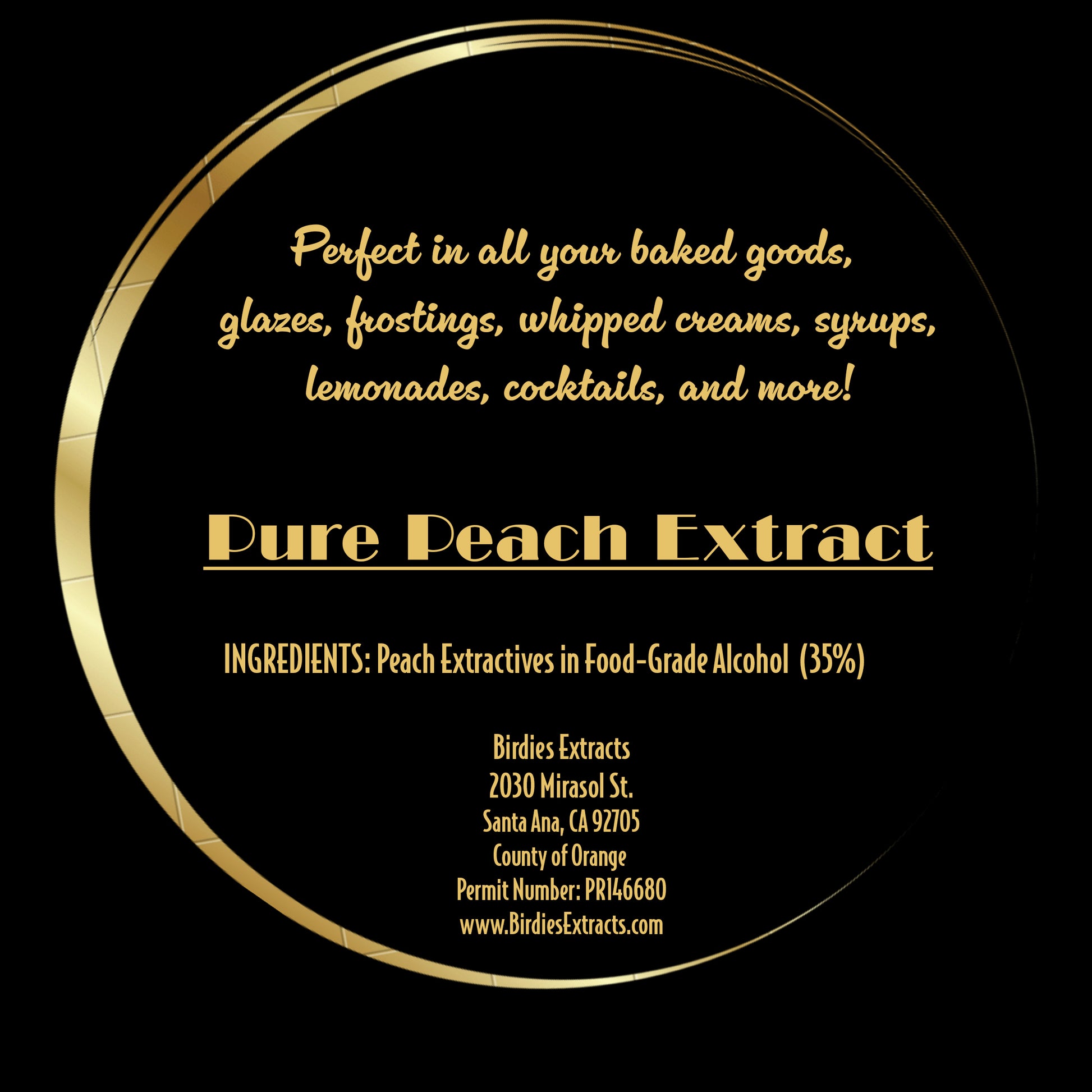 Our Pure Peach Extract are delicious, fragrant, and a completely natural way to bring flavor of fresh peaches into your kitchen pantry. Add a burst of peach to your recipes without any artificial flavorings or additives. Our extracts are hand-crafted in small batches using California peaches and organic food-grade alcohol. Perfect way to enhance your baked goods, glazes, frostings, whipped creams, syrups, lemonades, cocktails, and more!